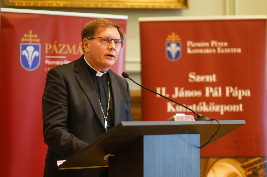 A délelőtti ünnepi ülés moderátora Martos Levente Balázs esztergom-budapesti segédpüspök, a PPKE Hittudományi Karának tanszékvezetője volt.