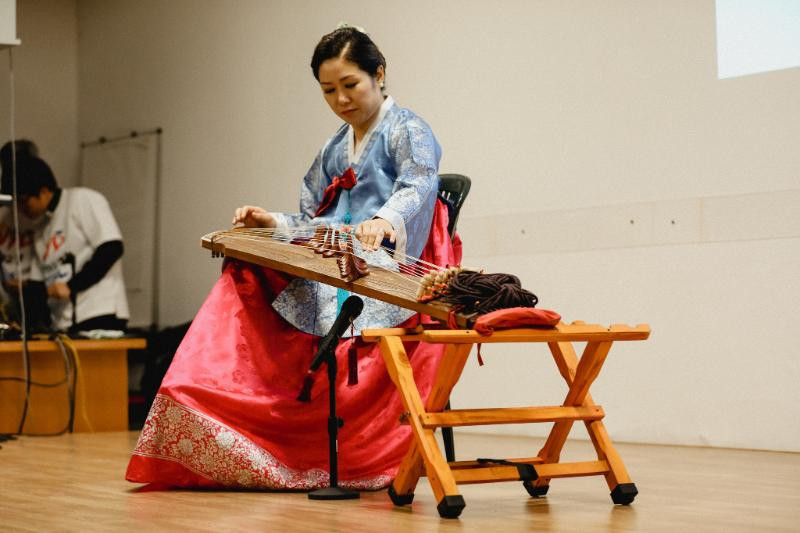 Meghallgattuk a tradicionális húros hangszer, a kajagum érdekes hangzását, láthattunk néhány koreai táncot, és persze rövid betekintést nyerhettünk a koreai történelembe.