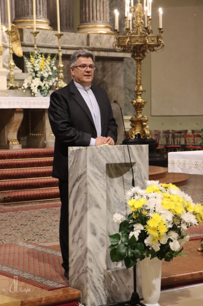 A szentmisét követően Kuzmányi István állandó diakónus, portálunk főszerkesztője, az est szervezője köszöntötte a jelenlévőket. Hangsúlyozta, hogy az esti találkozás legfőbb célja a hálaadás a Mindenség Urának és az olvasóknak, akik tavaly, a pandémia idején, minden bezártság ellenére meghallották a nagyobb szükséget szenvedők kiáltását, melyet Afréka továbbított a Magyar Kurír és az Új Ember hasábjain.