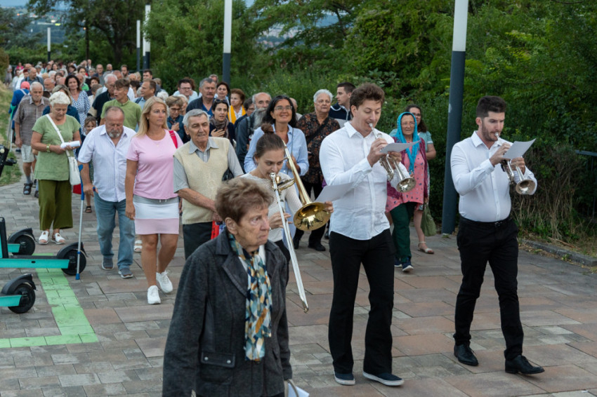 A két napon át tartó búcsúi ünnep nyitó szentmiséje után a Havas Boldogasszony-kegykép másolatával a Boldogságos Szűzanya tiszteletére körmenetben énekeltek és imádkoztak a résztvevők a Pécsi Egyházmegyéért és Egyházunkért a templom melletti Havi-hegyi sétányon.