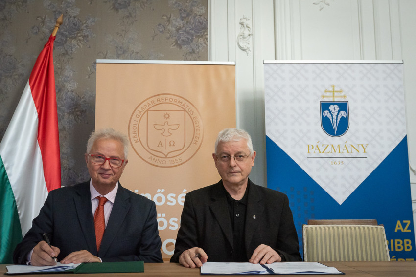 A december 3-án, a budapesti Károlyi-Csekonics-palotában rendezett aláírási ceremónián részt vett a Károli Gáspár Református Egyetem részéről Trócsányi László rektor; Furkó Bálint Péter tudományos és innovációs rektorhelyettes; Csoma Mózes, a Bölcsészet- és Társadalomtudományi Kar dékánja és Szabó Katalin Zsuzsanna oktatási főigazgató asszony; a Pázmány Péter Katolikus Egyetem (PPKE) részéről Kuminetz Géza rektor; Birher Nándor, a Bölcsészet- és Társadalomtudományi Kar dékánja és Hajdu Gábor hivatalvezető.
