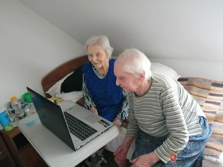Ezen a napon hat idős embernek vásárolunk. Mind önkéntesek a Szolgáló Szeretet Házában vagy a járóbeteg szakellátás rendelőjében. Gyógyszerkiváltás, áruházak, és végül házhoz visszük a csomagokat, többek között Taubert Ferencné Mária néninek, aki alapító tagja a pécsi önkéntes csoportnak és a kilencvenes évek óta a járóbeteg-rendelés asszisztenseként dolgozott. „Ez a legnagyobb segítség, a bevásárlás, és hogy figyelnek ránk, mert nagyon hiányzik a Málta és hiányoznak az ottani emberek.”