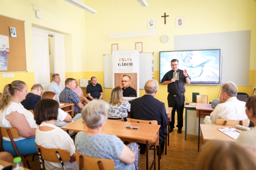 Kránitz Mihály kiemelte: a boldoggá avatási folyamat során minél szélesebb körben kell megismertetni Ervin Gábort, ennek fontos mozzanata ez a mai rendezvény is. A teológus professzor felidézte: iskolai osztályfőnöke, Makádi Margit is itt végzett, a Salvator Intézetben, tőle hallott először Ervin Gáborról, aki az ő hittanára volt. Huszonhat évvel ezelőtt történt ez, és „Margit néni” egy könyvet is ajándékozott neki, a Veni Sancte – Te Deum. Rövid szentbeszédek című, 1939-ben megjelent kötetet, amely az akkor huszonhét éves Ervin Gábor szentbeszédeit tartalmazza.