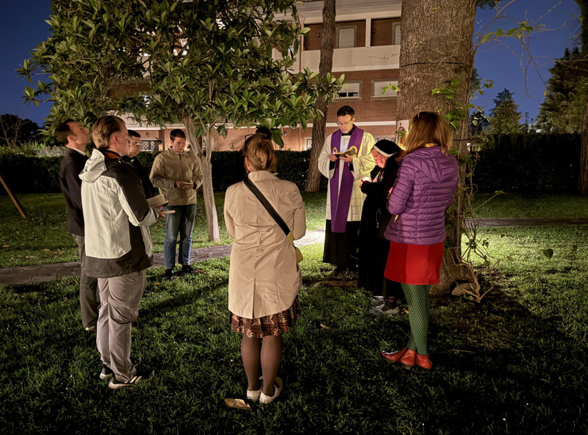 A program pénteken este kezdődött: együtt jártuk végig a keresztutat a Szent István Ház kertjében felállított állomások mentén. Másnap a Szent Péter-bazilika Magyarok Nagyasszonya-kápolnájában szentmisével indítottuk a zarándoklatot, majd innen a Falakon kívüli Szent Pál-bazilikához mentünk.