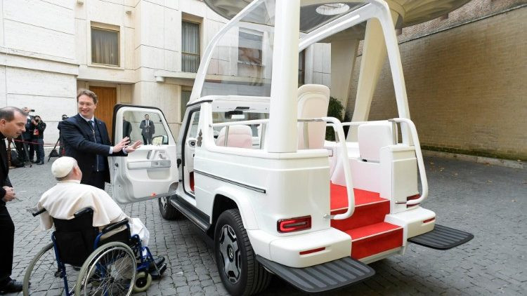 A Mercedes-Benz közel százéves tapasztalattal rendelkezik a pápai autók gyártásában. Az első járművet Stockholmban készítették, és 1930-ban adták át XI. Piusznak. Ferenc pápa eddig is egy G osztályú gépkocsit használt, amely azonban benzines volt. „A zéró kibocsátás felé tartunk, és sok elektromos terméket gyártunk. Idén dobtuk piacra az elektromos G osztályt. Ezen az úton haladunk tovább a következő években is” – ismertette Ola Källenius.