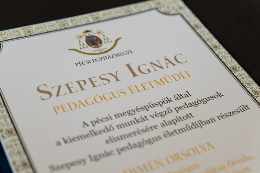 A rendezvényen Felföldi László pécsi megyéspüspök és Koósz Roland, a Pécsi Egyházmegye oktatási irodavezetője adta át a Szepesy Ignác-életműdíjat a kiemelkedő pedagógusi munka elismeréseként.
