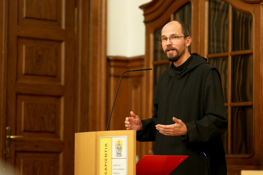 Motiválja-e mai fiatalt, a mai embert, hogy bölcs legyen? Tudjuk-e vonzóvá tenni számára a bölcsességet, amit a monasztikus hagyomány a mai napig fontosnak tart – indította bevezetőjét a bencés szerzetes. Az előadó megőrizte és felrázta a fogalom eredeti értelmét és kidomborította lényegi üzenetét; annak útját mutatta meg, hogyan szólíthatja meg az önsegítő pszichológiai irodalom bűvöletében élő embert a bölcsesség szeretete, az Istennel való élő kapcsolatból fakadó életmód követésének vágya, hogyan lesz a megküzdött belső szabadságból valódi látás a dolgok lényegéről és súlyáról, hogyan érti meg helyét a teremtett világban.