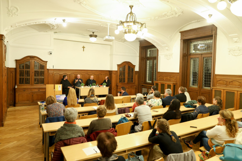A témába Baán Izsák OSB, a Szent Mauríciusz Monostor perjele tartott bevezetőt, ezt kerekasztal követte. A Kisnémet Fülöp OSB moderálta beszélgetésben részt vett Baán Izsák OSB, Guba András SP, a főiskola Innováció és Hálózatok Intézetének vezetője és Lukács János SJ, a Fáber Szent Péter jezsuita közösség elöljárója, a Jézus Társasága európai formációs delegátusa.