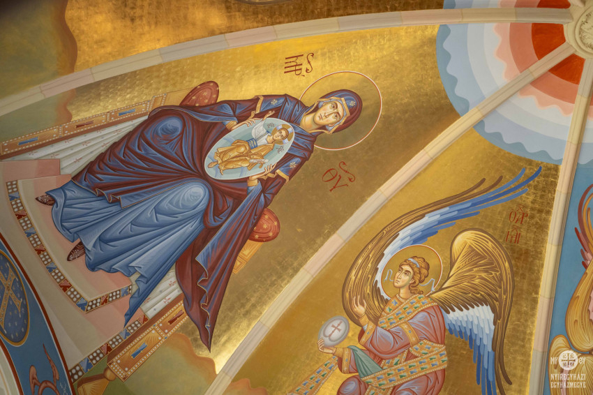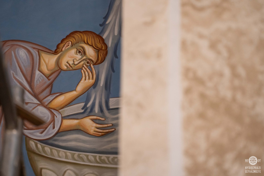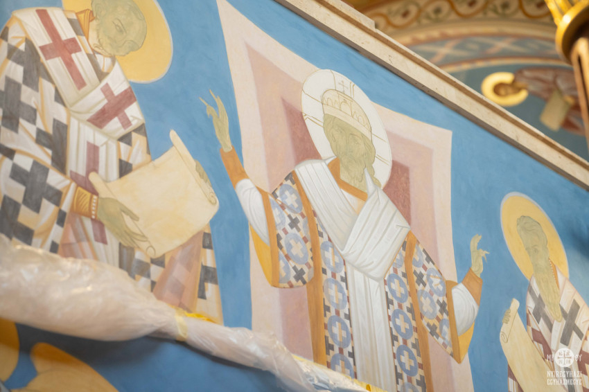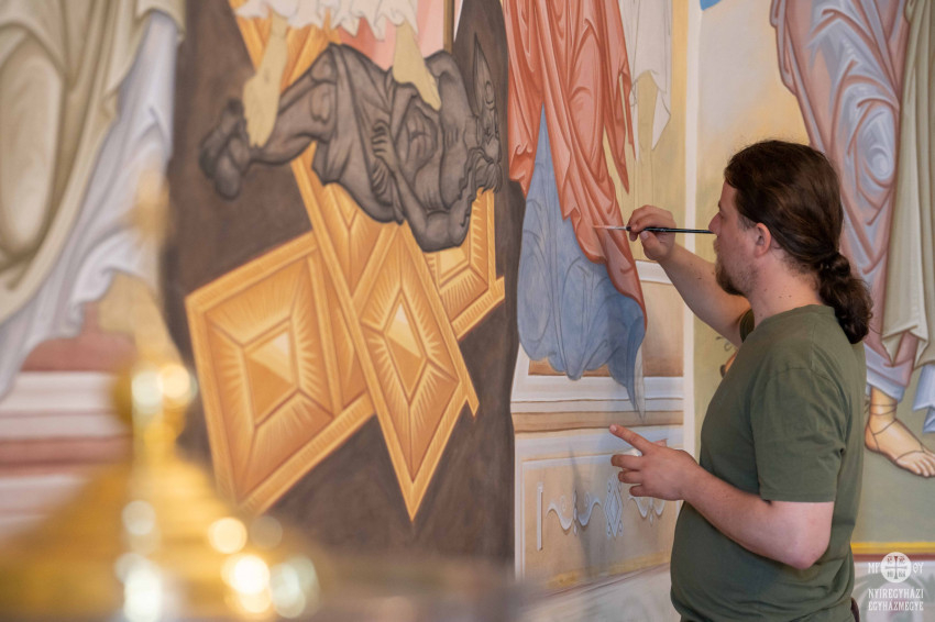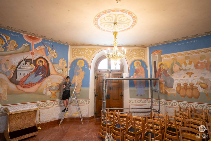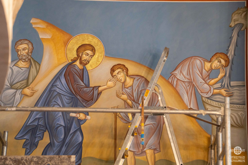 A munkálatok jelenleg a kereszthajóban, a két oldalsó bejáratot magában foglaló félkörívben zajlanak, valamint a karzat alatti falfelületeken és a szentélyben, az ikonosztáz belső falán.