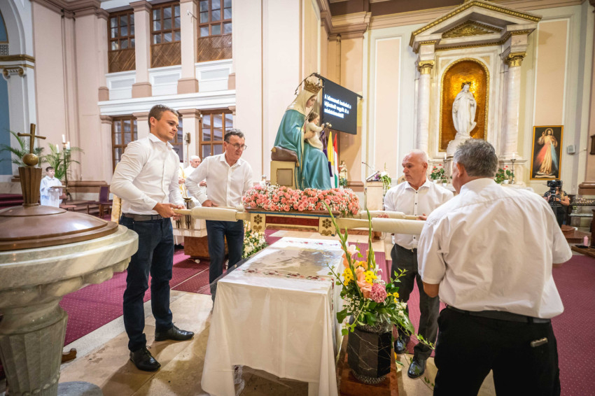 Másnap reggel a skapulárék megáldása előzte meg az ünnepi szentmisét. A kis nyakba akasztható textíliát ma már inkább egy érme jelzi, hogy az illető tagja a skapulárétársulatnak.