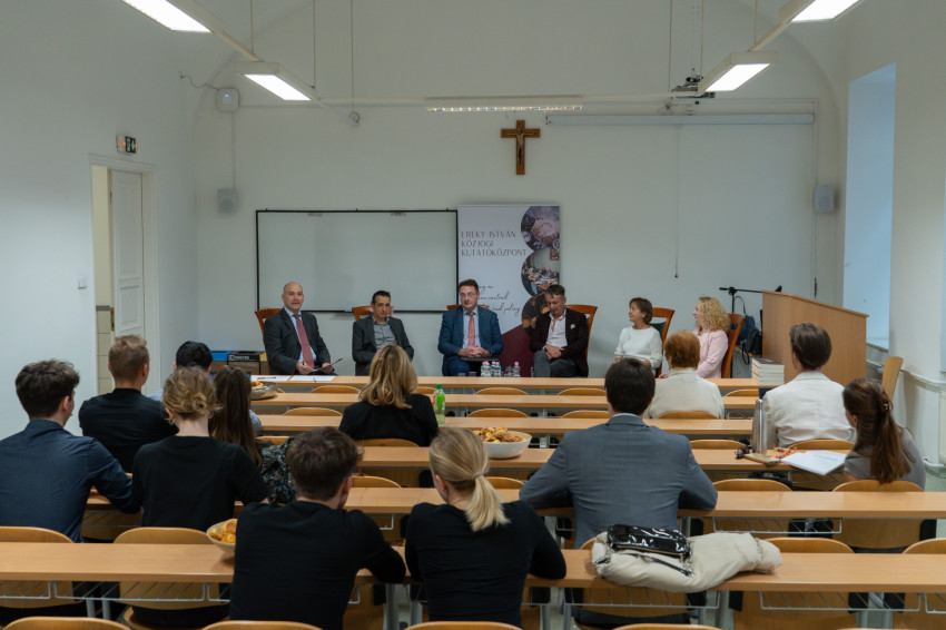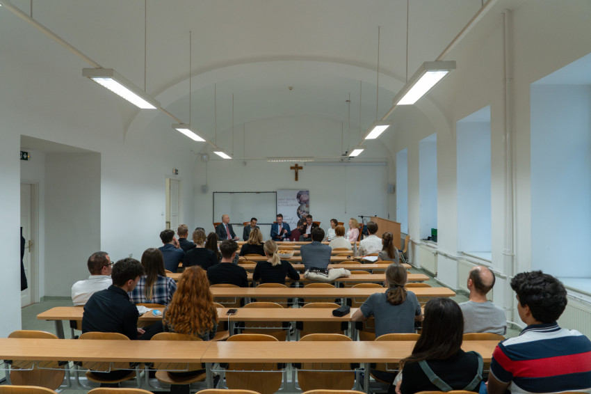 A katedrabeszélgetést Zakariás Kinga és Gerencsér Balázs, a Pázmány jogi karának docensei vezették.
