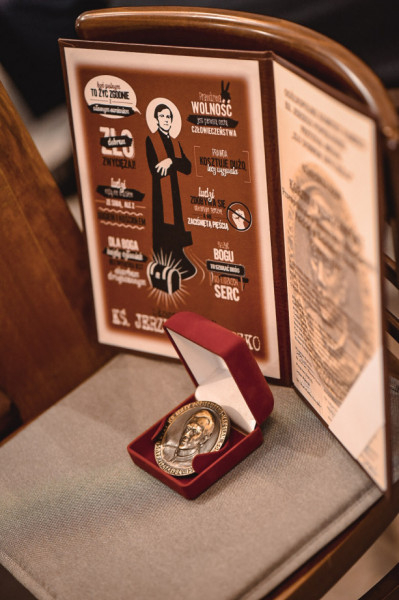 Ezt követően a lengyel delegáció átadta a „Rosszat jóval győzd le” emlékérmeket, amely kitüntetést 1998 óta ítéli oda egy emlékbizottság mindazoknak, akik méltóképpen őrzik Jerzy Popiełuszko emlékét. Az érmet a jeles eseményen Cserháti Ferenc püspök, Szili András plébániai kormányzó, valamint Kiss László, Óbuda polgármestere és Wesolowski Korinna, az Országos Lengyel Önkormányzat elnöke vehette át.