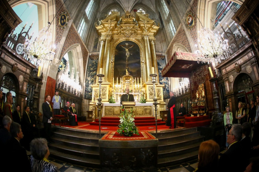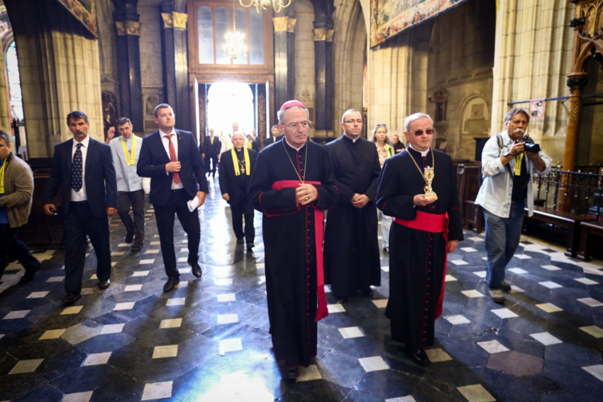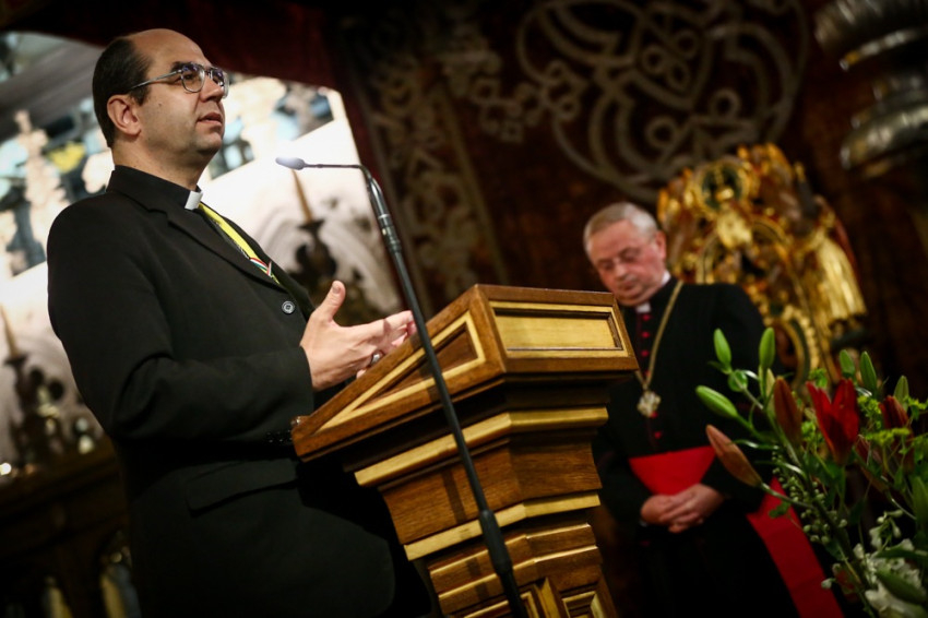 Az ereklye elhelyezése előtt Zdzisław Sochacki, a katedrális kanonok plébánosa köszöntötte a magyar zarándokokat, és utalt a magyar és a lengyel nép barátságára, közös történelmére.