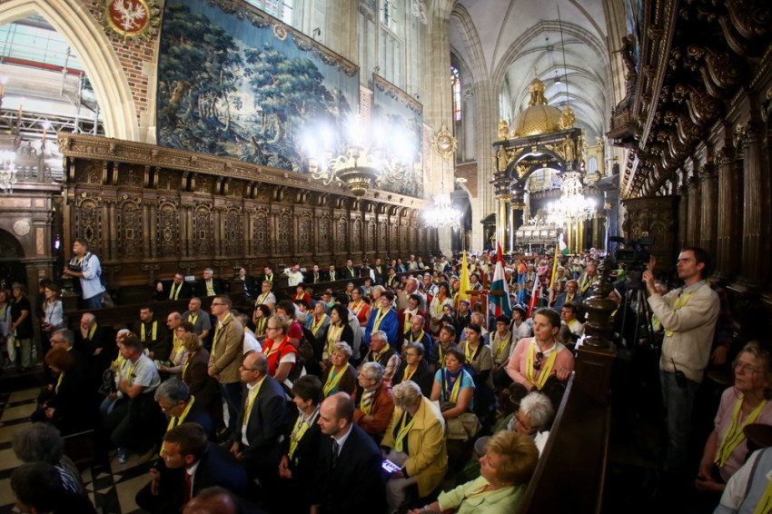 Ha elveszik a nép hite, elveszett a háború is – mondta egy kínai császár a legenda szerint. A nemzet jövője ma is a nép hitén múlik – mutatott rá Székely János, hozzátéve: erről a hitről is beszélnek és kiáltanak a Wawel kövei. Bár ma sokan le akarják rombolni ezt, ne hagyjuk, s kérjük ehhez Szent László közbenjárását – zárta beszédét a zarándokok lelkivezetője. Székely János ezután Szent László királyhoz fohászkodott, kérve oltalmát népére. Ezt követően helyezték el Szent László ereklyéjét a katedrálisban.