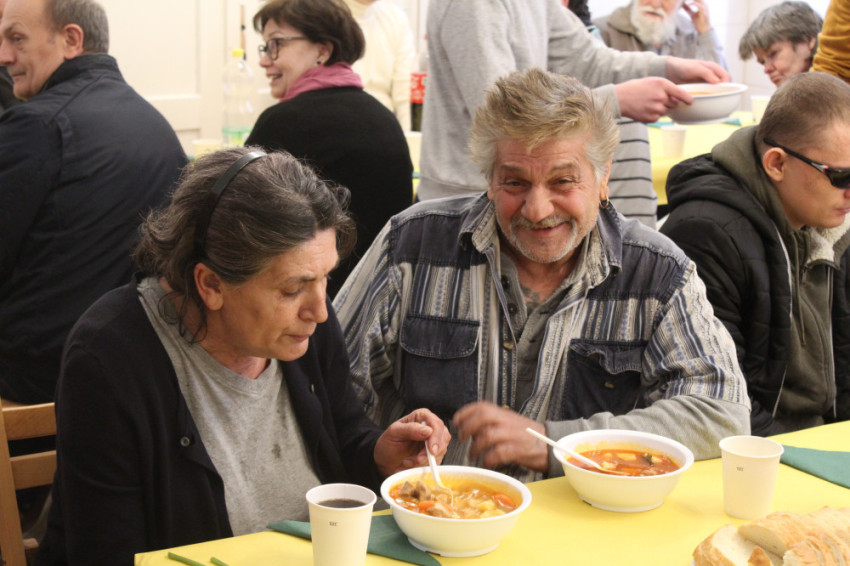 A szentmisét követő szeretetvendégség különlegességét az adta, hogy a pécsi Sant’Egidio közösség első alkalommal látta vendégül rászoruló barátait saját helyi otthonában, a Zichy Gyula Alapítvány által fenntartott szociális központban, a Felsőmalom utcában.