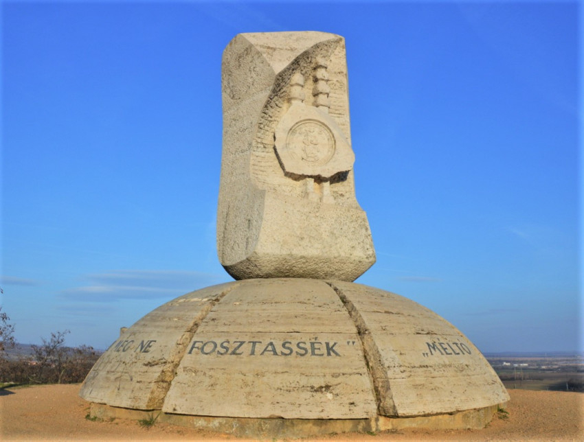 Aranybulla-emlékmű a székesfehérvári Csúcsos-hegyen (mészkő, 1972)