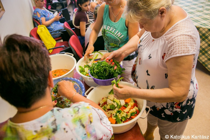 A program első alkalmán az egészséges táplálkozásról és sok családot érintő táplálkozási problémákról – liszt- és laktózérzékenység, inzulinrezisztencia – tanultak a résztvevők, majd házi vegetát készítettek friss zöldségekből. Ezalatt fejlesztő és ismeretterjesztő célú játékos gyermekfoglalkozásokat tartottak a Karitász önkéntesei a jelen lévő gyerekeknek. Így a szülők zavartalanul vehettek részt a napon.
