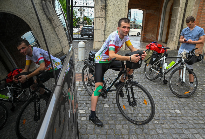 Június 25-én hajnalban a Pannonhalmi Főapátság falai alól indultak útnak a fiúk: Knáb András (24), Nádudvari Csongor (23), Szép Levente (22) és Bódy Ágoston (22) „Minden út, ami nem Rómába vezet, az Pannonhalmára” – állapította meg viccelődve az ötödik útitárs, Geri Kolos, akivel Münchenig egészül ki a csapat. Ő a legfiatalabb kerékpáros, néhány napja végzett a szóbeli érettségikkel. Kolos végzősként elnyerte a gimnázium ösztöndíját, így az egyetem előtt egy évet Amerikában, a bencés Saint Vincent College-ban tölthet. A pennsylvaniai kaland előtt számos elintéznivalója akad még, így a 40 napos zarándoklatot egészében nem tudta vállalni.