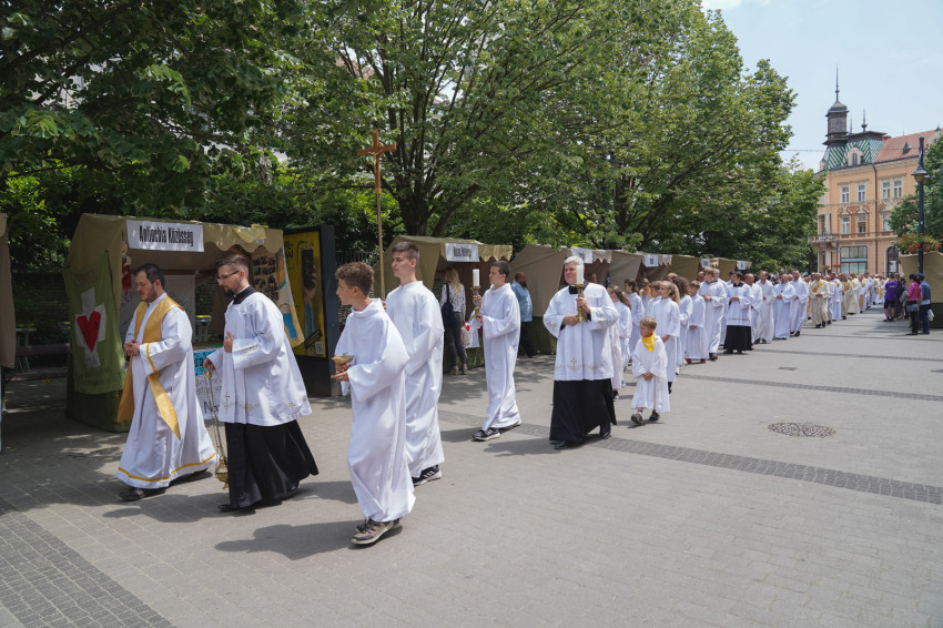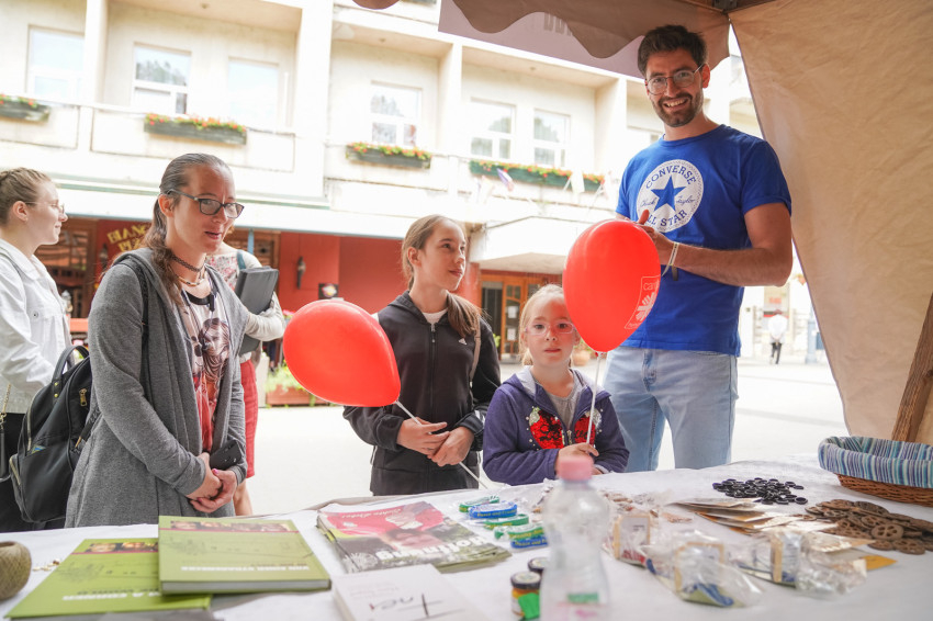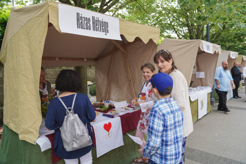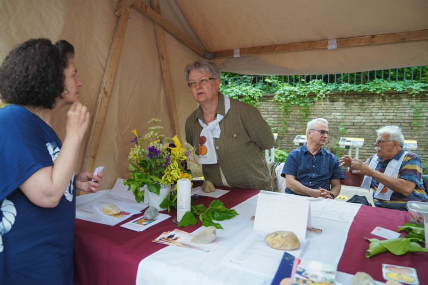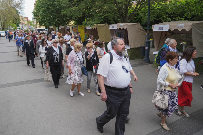 Sátrak sora vezet a püspökségtől a székesegyház felé. Felvonultak az egyházmegye intézményei, közösségei, lelkiségi mozgalmai. Van mit megmutatni. A sort a cserkészek kezdik: játékkal, kvízzel várják az érdeklődőket. Mellettük a teremtésvédelmi csoport, az Antióchia Közösség, a családpasztoráció, a Házas Hétvége, a Cursillo, a Szent Imre Alapítvány. Az egyházmegyei karitász általános tevékenysége mellett bemutatja a hajléktalanokat befogadó Szent Lázár-házat. Három fiatal fogadja a most induló, szenvedélybeteg-szolgálat, a Fasenda Esperanza képviseletében a látogatókat.