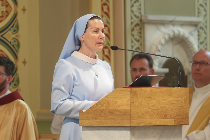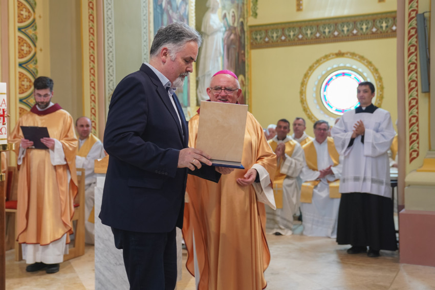 Megemlékezett a múltról, ugyanis Kaposvár is ünnepel ebben az évben, városi rangra emelésének 150. évfordulóját. Felelevenítette a hitélet kezdeteit, az 1715-ben történt plébánialapítást, a sorra születő egyházi intézményeket. Az egyházmegyével való jó együttműködésért köszönetet mondva emlékzászlót adott át Varga László kaposvári megyéspüspöknek, s arra kérte, ossza meg vízióját a jövőről.