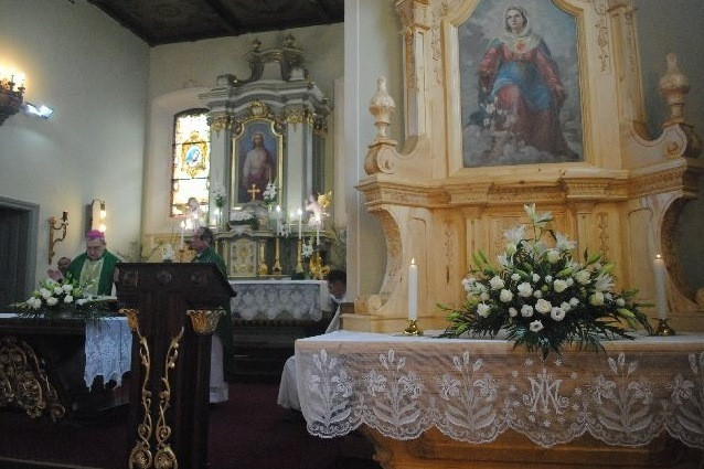 A Szűz Mária szeplőtelen szívét ábrázoló képet keretező alkotás 55 éves tervrajz alapján készült, két erdélyi mester, Péter Sándor és György Gábor munkája.