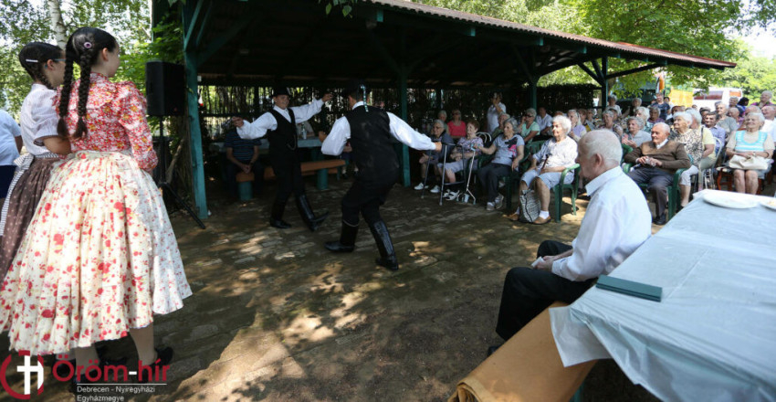 A püspöki szentmise után a lakók újabb élményben részesülhettek: a fiatalságukat megidézendő a nyíregyházi Szabolcsi Néptáncegyüttes négy tagja örvendeztette meg őket, Sztancs Attiláné vezetésével: a fiúk korcsos néptáncot jártak, majd a lányokkal együtt a közeli település hagyományát, a bökönyi táncokat adták elő ismerős dallamokra.