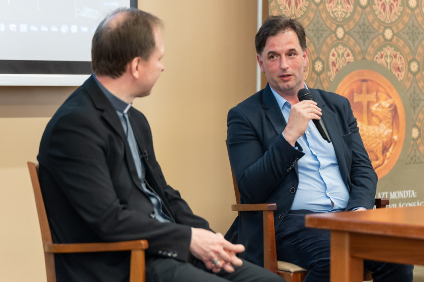Az előadást követően kerekasztal-beszélgetést tartottak, Mohos Gábor püspök, Felföldi László pécsi megyéspüspök, Forrai Tamás SJ egyetemi lelkész, valamint Görföl Tibor teológus, a beszélgetés moderátora és a program házigazdája részvételével.