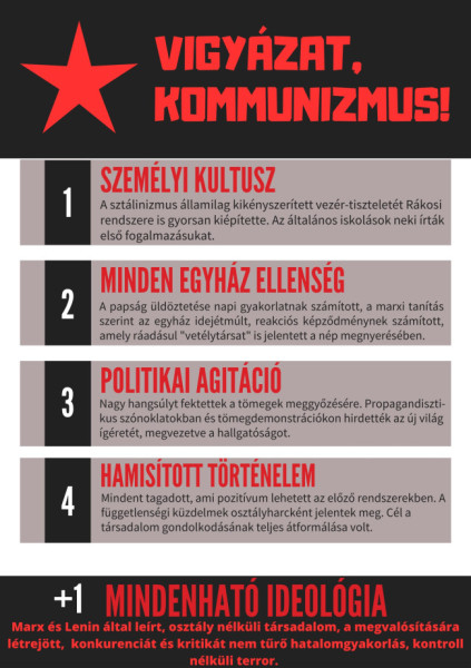 A meghívott előadó, Melkovicsné Madarász Anita, a Nemzeti Emlékezet Bizottsága (NEB) tudományos főmunkatársa áttekintést adott a diákoknak a kommunizmus ideológiájának létrejöttéről, majd a II. világháborút követő időszakhoz érve bemutatta a Rákosi-korszak propagandatevékenységét, beleértve a Joszif Visszarionovics Sztálin „legjobb magyar tanítványát”, Rákosi Mátyást övező személyi kultuszt is.