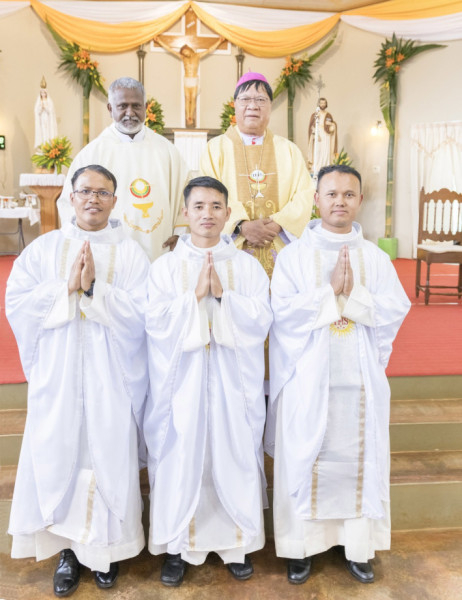 „Elhívtalak a szeret szolgálatára” – a három jezsuita által választott papi jelmondat egy olyan érsekség területén, ahol az 1,8 milliós lakosságból 7000 fő katolikus. Taunggyi érseke, Basil Athai püspök emlékeztetett arra, hogy ez az első alkalom, hogy jezsuita rendtagokat szentelnek pappá az érsekség területén, amely elsőként fogadta Mianmarban a Jézus Társasága tagjait, miután a hatvanas években történt kiűzetésük után visszatértek. A három új pap, Joseph Thang Ha SJ, Jerome Aye Min SJ és Gerald Lukwe SJ hivatását Istenre és Szűz Máriára bízta, szem előtt tartva az ország nehéz helyzetét, a 2021-es katonai puccsot követő politikai és gazdasági helyzet romlását. Az elmúlt két évben már mindhárman első kézből megtapasztalták az országban zajló polgárháború miatt kitelepítettek és hajléktalanná váló emberek szolgálatát, és mint mondták, megértették, hogy éppen a nehézségek és szenvedések idején „a reményt hivatottak közvetíteni”.