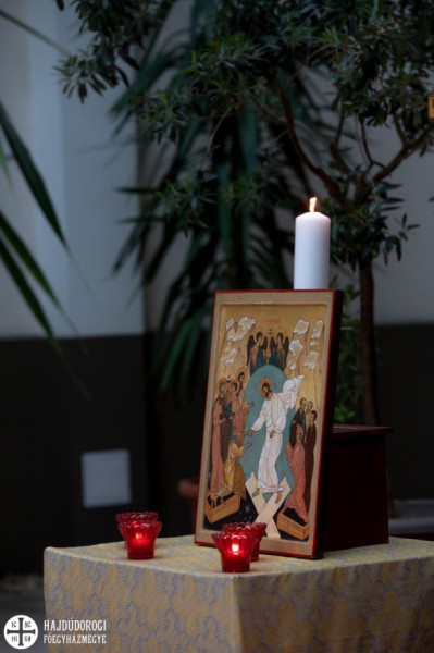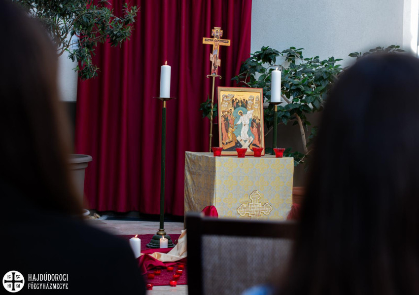 Az aula díszítéséről Rakaczkiné Vadász Viktória, a Hajdúdorogi Főegyházmegyei Pasztorációs Iroda főmunkatársa gondoskodott: ikonokkal, gyertyákkal, drapériával tette hangulatossá a helyszínt.