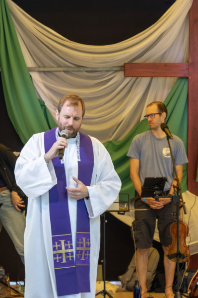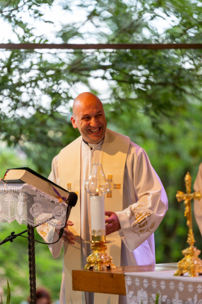 A szentmise végén Vízi János atya megköszönte a zenei szolgálatot az egri Jézus Szíve Plébánia Talentum nevű ifjúsági ének- és zenekarának.