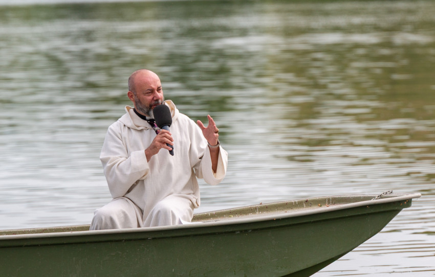A szalóki találkozó második napján Koós Ede plébános a település melletti tó vizén ringatózó csónakból mondta el tanítását a vízhez zarándokló fiataloknak. Elmélkedésében elsőként Máté evangéliumából a vihar lecsendesítésének történetét elevenítette fel.