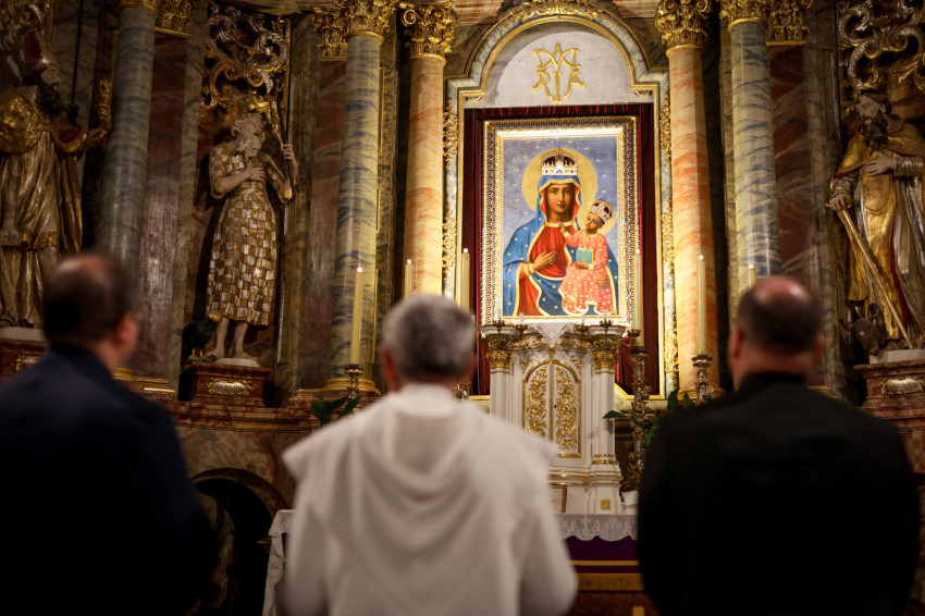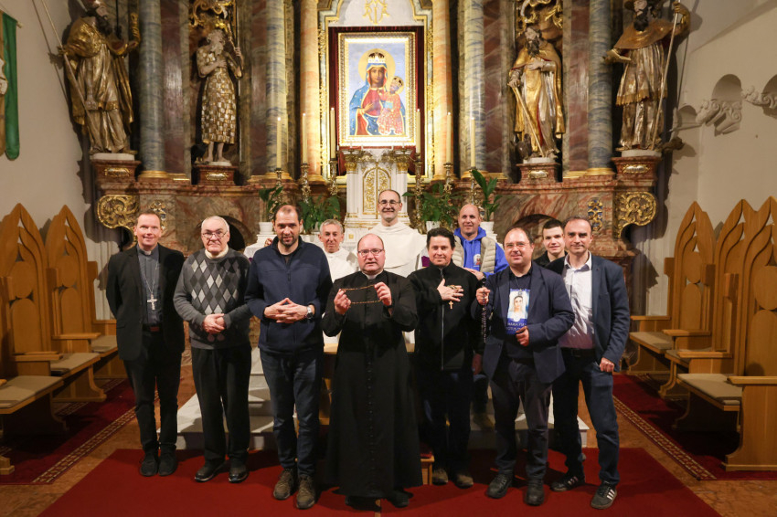 Márianosztrán már hagyománnyá vált, hogy minden hónap első szombatján férfiak gyűlnek össze a bazilika előtt, hogy térdepelve, közösen imádkozzák a rózsafüzért. Az alázatos, mégis határozott tanúságtétel tavaly májusban vette kezdetét, és azóta is töretlen erővel hívják közös bűnbánatra és közbenjárásra a családfőket, fiatalokat és idősebbeket egyaránt. Ezúttal közel kétszáz férfi együttes imája és éneke töltötte be a Pálosok terét.