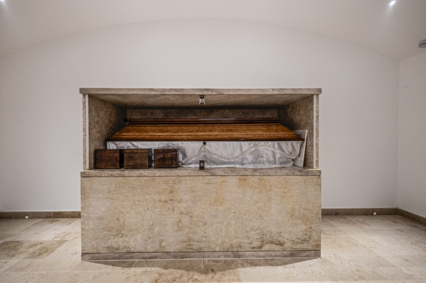 Október 22-én délelőtt a Premontrei Iskolaközpont közösségének részvételével zajlott Sopronyi Kálmánka és szüleinek újratemetése a templom kriptájában.
