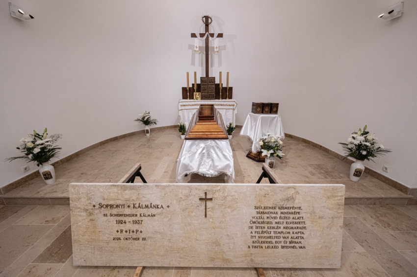 Október 21-én délutántól kezdve volt látogatható Sopronyi Kálmánka és szüleinek ravatala az altemplomban.