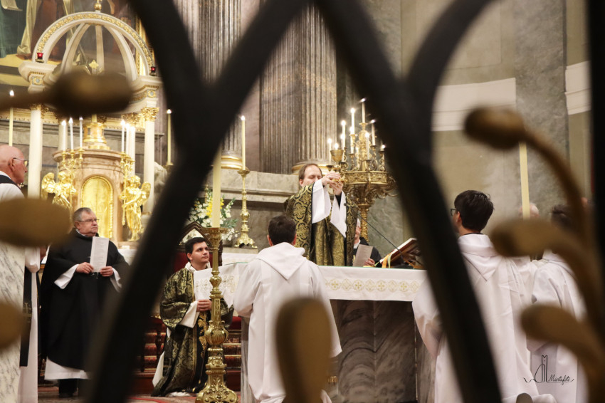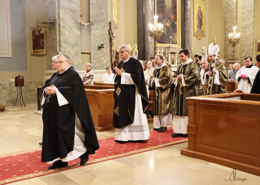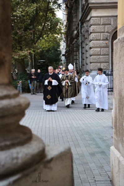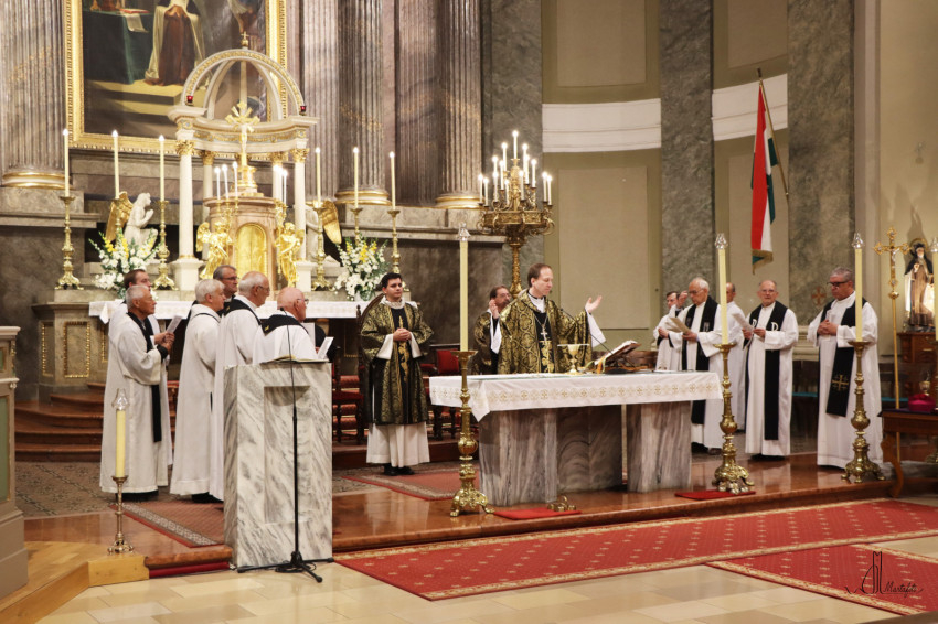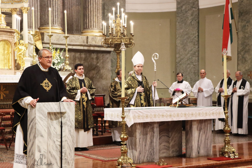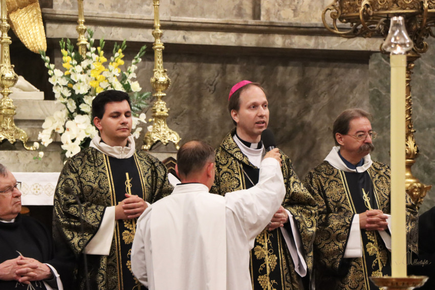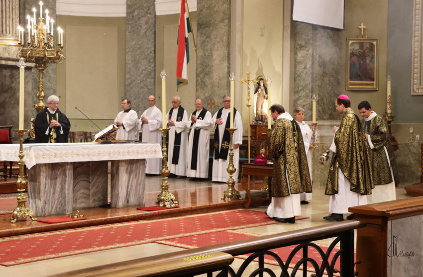 A szentmise főcelebránsa Mohos Gábor esztergom-budapesti segédpüspök, a főszékesegyházi káptalan nagyprépostja volt, aki a mise elején köszöntötte a káptalan tagjait, a regnumi atyákat és a Hajnal családot.