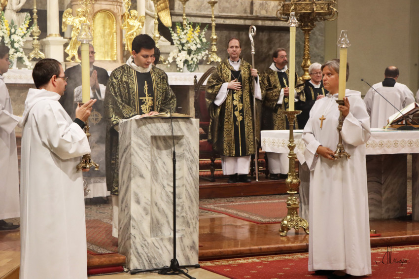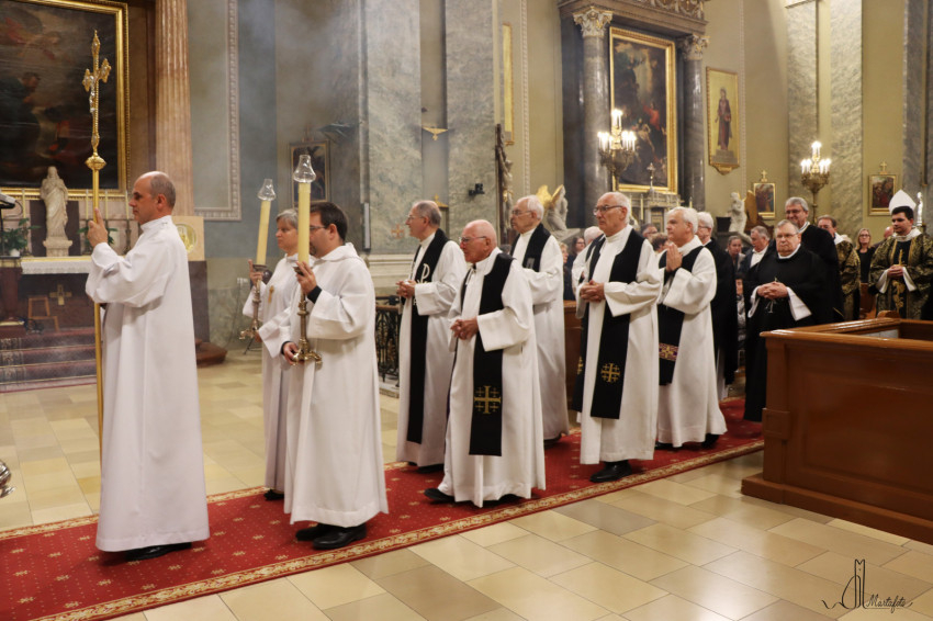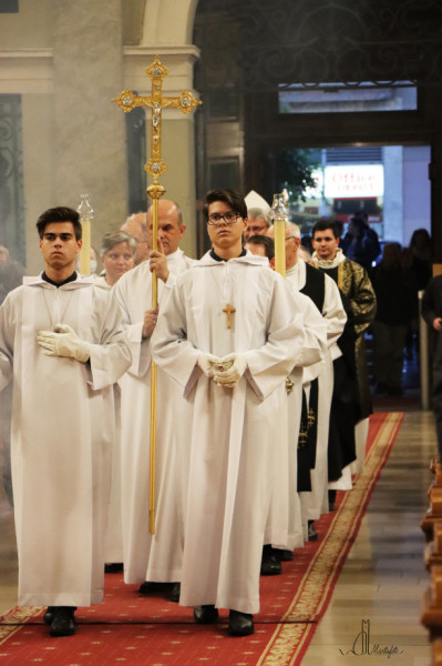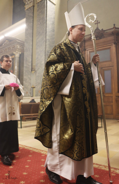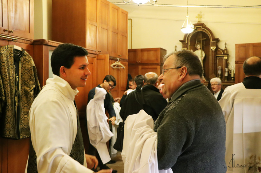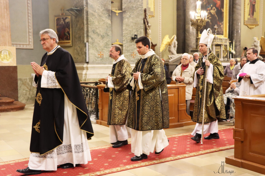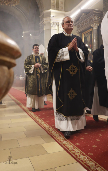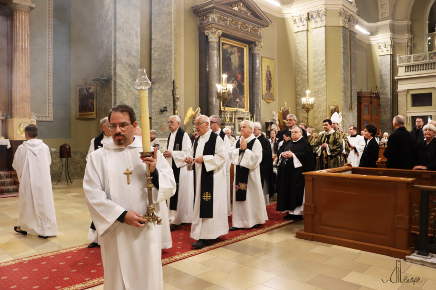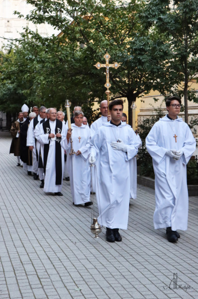 A szentmise főcelebránsa Mohos Gábor esztergom-budapesti segédpüspök, a főszékesegyházi káptalan nagyprépostja volt, aki a mise elején köszöntötte a káptalan tagjait, a regnumi atyákat és a Hajnal családot.