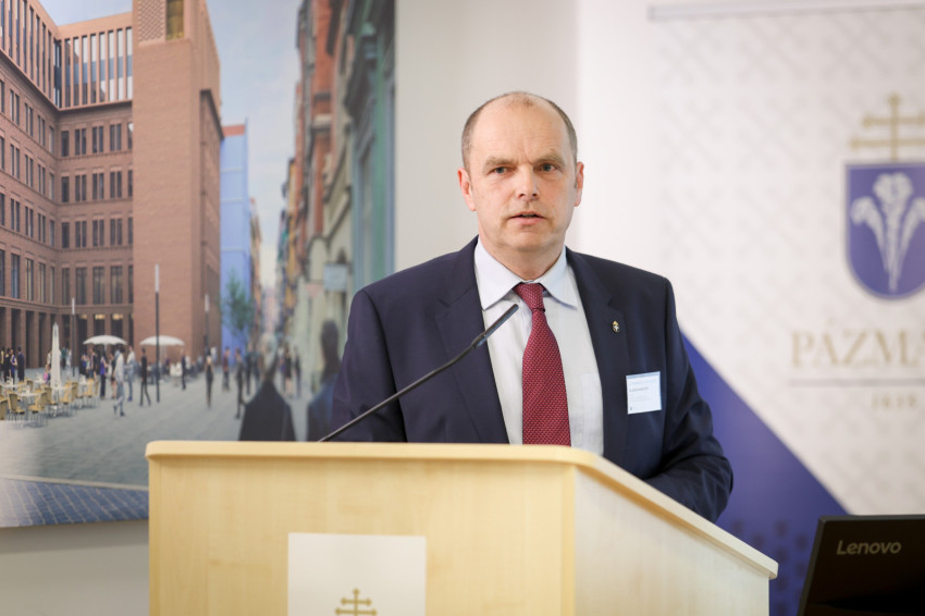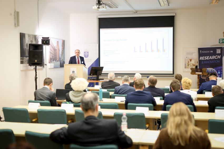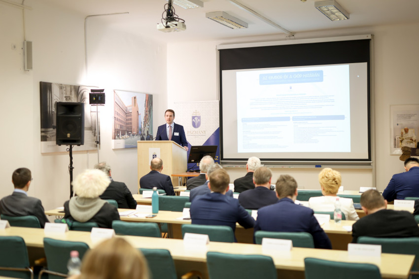 Kuminetz Géza, a PPKE rektora köszöntőjében rámutatott, az MI megalkotása kétségkívül az emberi intelligencia csúcsteljesítménye, de humánus működtetéséhez is magas szintű szakmai ismeretek kellenek. Ugyanakkor az is megfigyelhető, hogy ezt a technológiát e világ urai hatalmuk kiterjesztésére használják. Ezt Byung-Chul Han koreai-svájci kultúrteoretikus „globális információs rezsimnek” hívja. Az a modern társadalom, mely létrehozta, nem tűnik különösebben intelligensnek, hiszen rombolja a környezetet, az igazságtalanságokat pedig nem orvosolja. A valódi haladás – emelte ki a rektor – a helyesen értett emberi természet kibontakoztatása. Arról sem szabad megfeledkezni, hogy a tudományos felfedezések és találmányok adaptációs időt igényelnek.