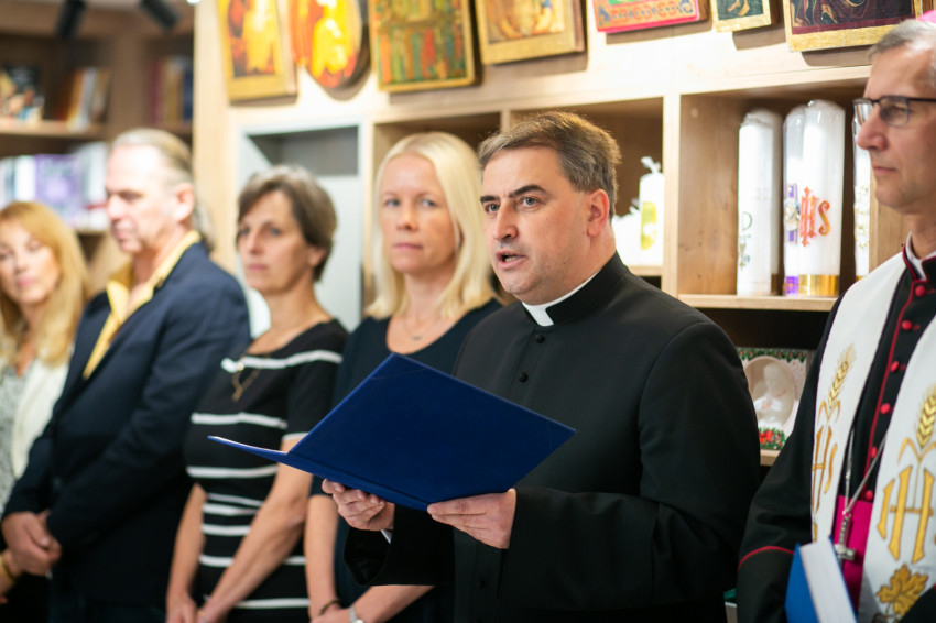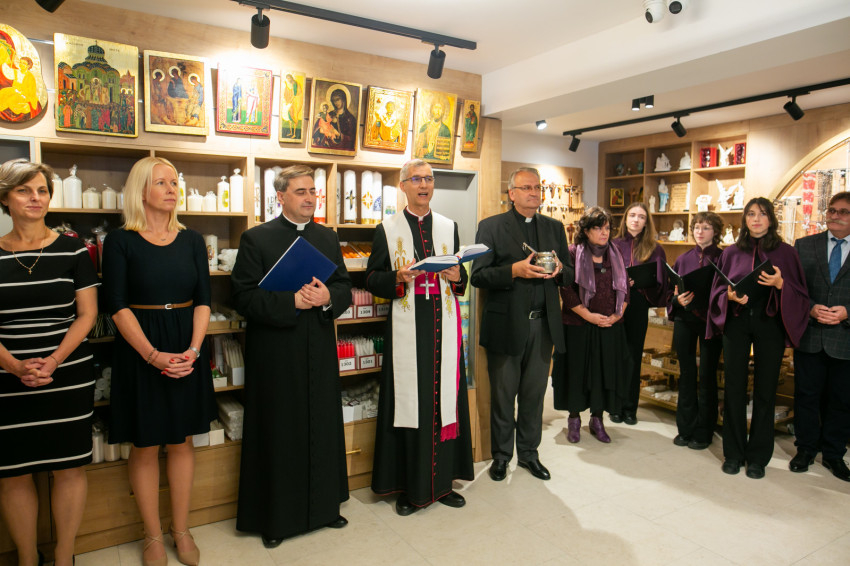 Perger Gyula köszönetet mondott Martos Levente Balázs segédpüspöknek is, hogy megáldotta a megújult üzlethelyiséget.