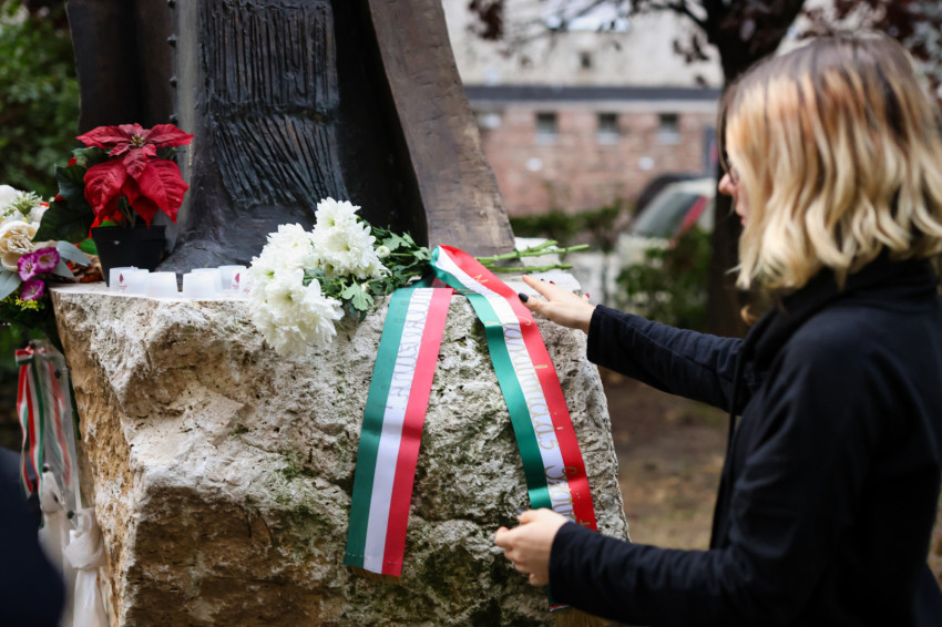 Végül Mindszenty József szobránál elhelyezték az emlékezés koszorúit.
