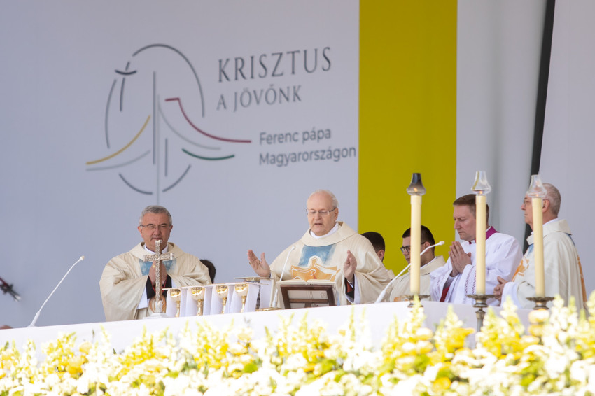 A szentmise végén Erdő Péter bíboros, prímás, esztergom-budapesi érsek mondott köszönetet a Szentatyának apostoli látogatásáért – a beszéd ITT olvasható