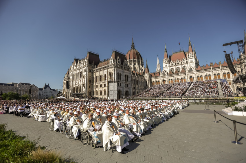 Ferenc pápa háromnapos magyarországi apostoli látogatásának csúcspontjaként április 30-án, vasárnap délelőtt szentmisét mutatott be a budapesti Kossuth téren, a szertartás vezetését megosztva Erdő Péter bíborossal. Ötvenezren vettek részt a liturgián, ebből harmincezren voltak a Kossuth téren.
