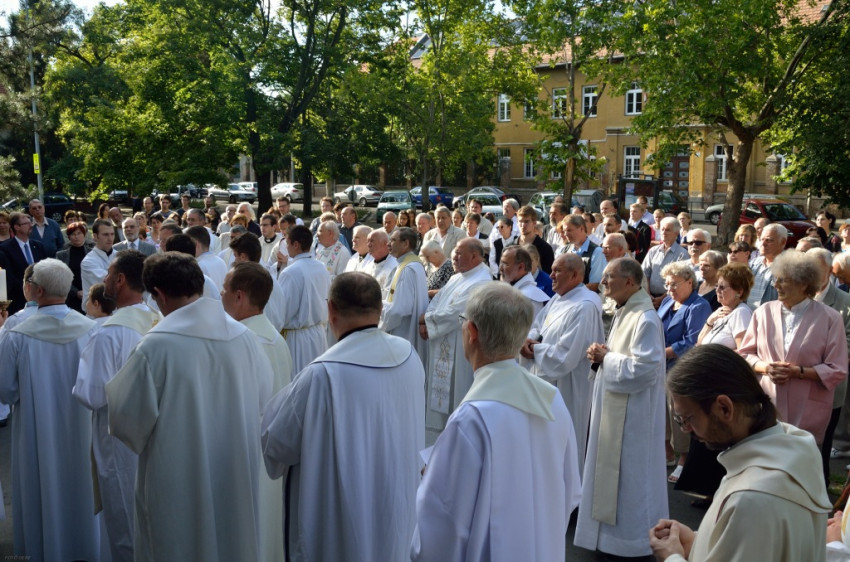 Az Albertfalvai Plébániatemplom előtti téren kezdődött a megemlékezés szerdán este. A templom külső falán, a főbejárat mellett elhelyezett emléktáblát a szentmise főcelebránsa, Pákozdi István pápai káplán, érseki tanácsos, egyetemi lelkész áldotta meg. A plébániai közösség nevében Bató András világi elnök, Újbuda Önkormányzata képviseletében pedig Molnár László alpolgármester helyezett el koszorút.