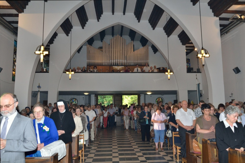 A szentmisére zsúfolásig megtelt a templom. A szomszédos plébániákról és Antal atya korábbi szolgálati helyeiről egyaránt érkeztek, de képviseltették magukat a Szatmári Irgalmas nővérek Esztergomból, valamint a különböző településeken tevékenykedő Karitász-munkatársak is, hisz mindkét közösségnek rendszeresen tartott lelkigyakorlatokat.