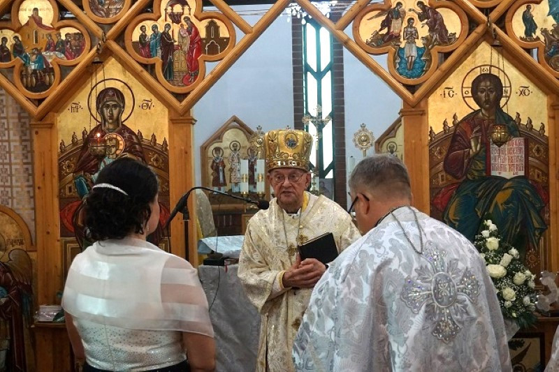 Keresztes Szilárd püspök a szertartáson megáldotta az ezüstlakodalmát is ünneplő Pacsai János atya és Mónika tisztelendő asszony házasságát.