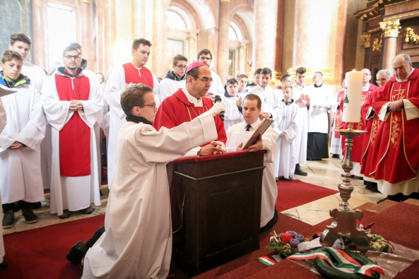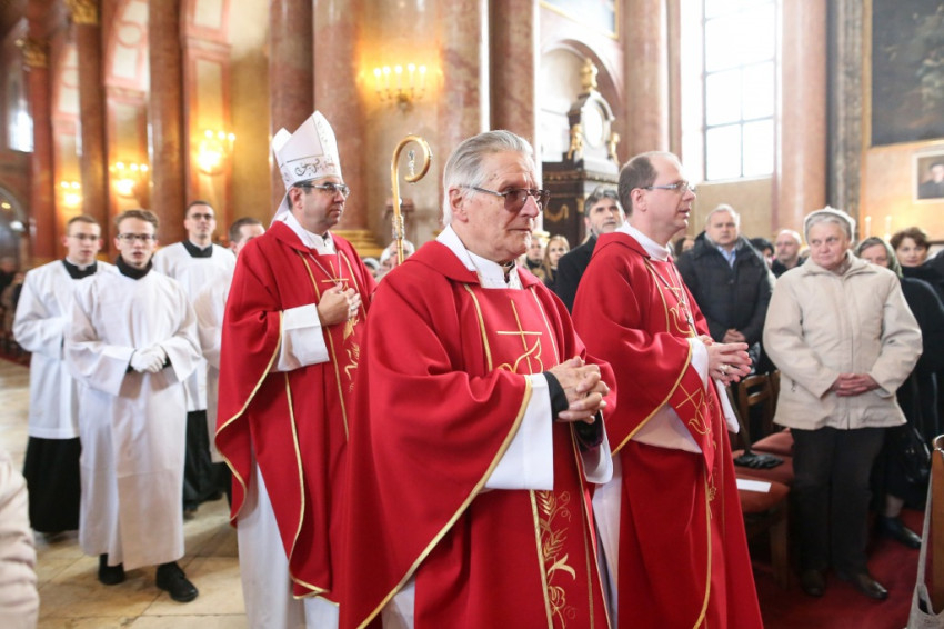 A szentmisére való bevonulást a papnövendékek vezették, mögöttük haladt az ünnepre összesereglett több mint száz ministráns, majd a paptestvérek következtek. A főcelebráns Székely János megyéspüspök, a szónok Bérczi L. Bernát ciszterci apát volt. Koncelebrált többek között Brenner József nagyprépost, Ruppert József posztulátor és Császár István általános helynök. A jelenlévők között volt a közélet számos képviselője, köztük Hende Csaba, az országgyűlés alelnöke, Szombathely országgyűlési képviselője, valamint Puskás Tivadar, Szombathely polgármestere.