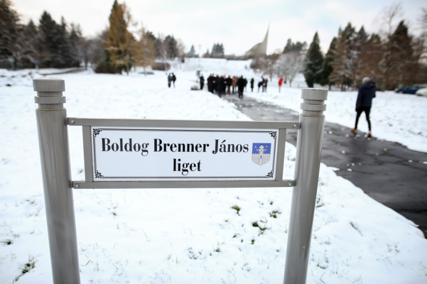Az ünneplés aztán ligetmegáldással folytatódott. Szombathely városának közgyűlése idén júniusban szavazott arról, hogy a közbeszédben „emlékmű- és szánkódombként” nevezett terület, az a hely, ahol május 1-jén 15 ezer hívő ünnepelte Brenner János boldoggá avatását, ezután a Brenner János liget elnevezést viseli majd. A helyszínen Hende Csaba, Szombathely országgyűlési képviselője, Puskás Tivadar polgármester, valamint Székely János szóltak az ünneplőkhöz. A megyéspüspök örömének adott hangot, hogy Krisztus keresztje meghódította ezt a teret is. Hangsúlyozta, azokat az embereket tekinthetjük a történelem nagyjainak, akik által a teremtő Isten megjelent a földön. A főpásztor megáldotta a ligetet, és mindazokat, akik használatba veszik majd azt.