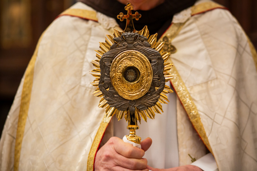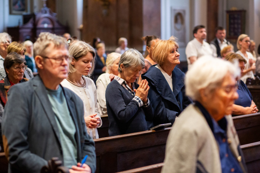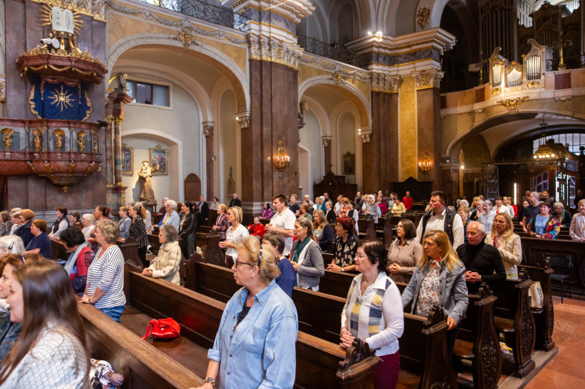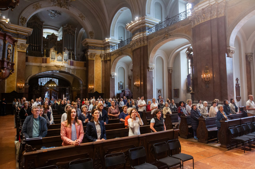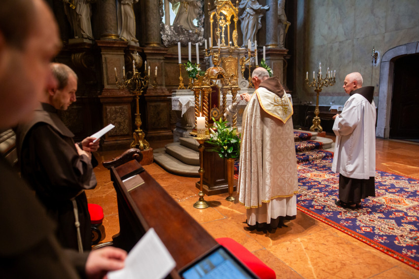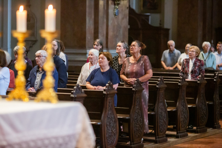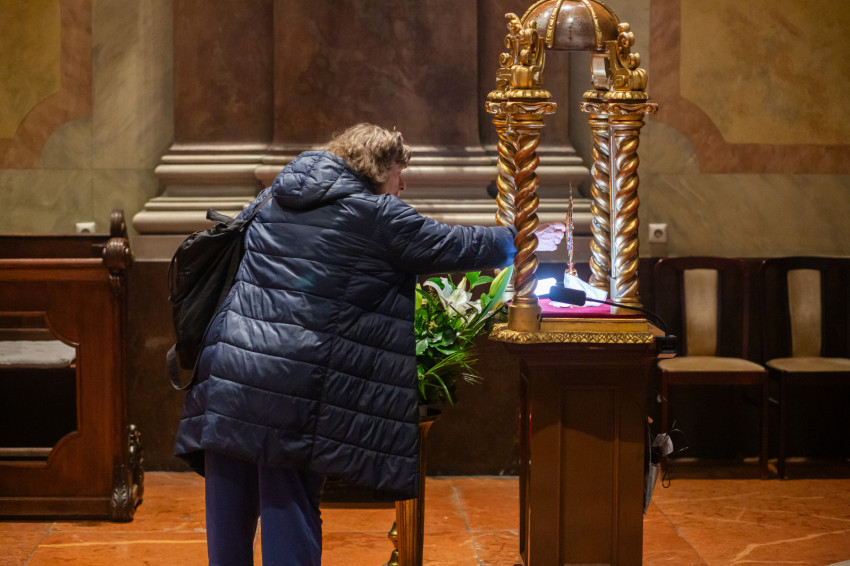 A szertartást megelőzően a hívők a ferences atyák vezetésével együtt imádkoztak Szent Antal kihelyezett csontereklyéje előtt.