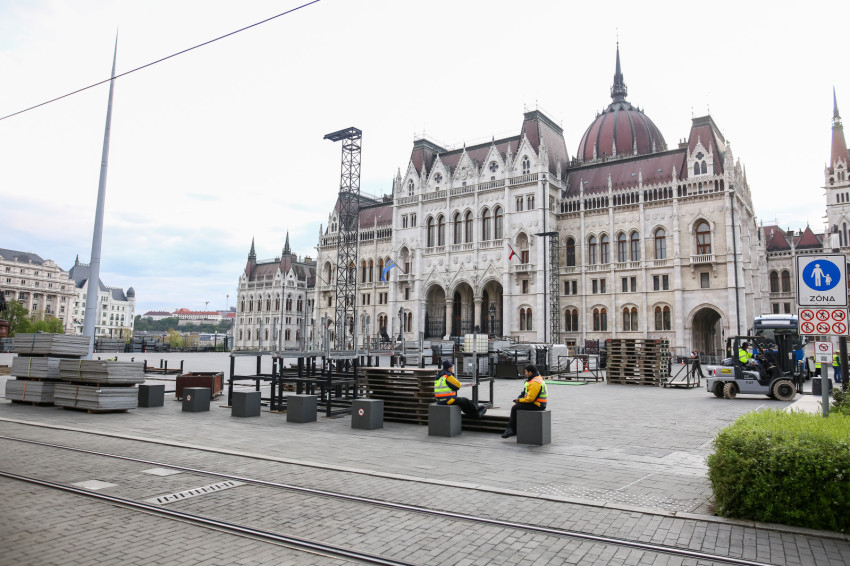 Már két hét sincs Ferenc pápa érkezéséig, nem véletlen, hogy az előkészítő munkálatok is egyre előrehaladottabb állapotban vannak. A Kossuth téren épül az a fémállványzat, emelvény, mely helyet ad a Ferenc pápa látogatásának harmadik napján, április 30-án 9.30-kor kezdődő szentmisének.