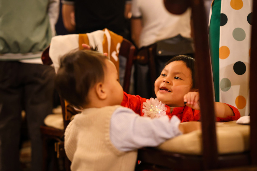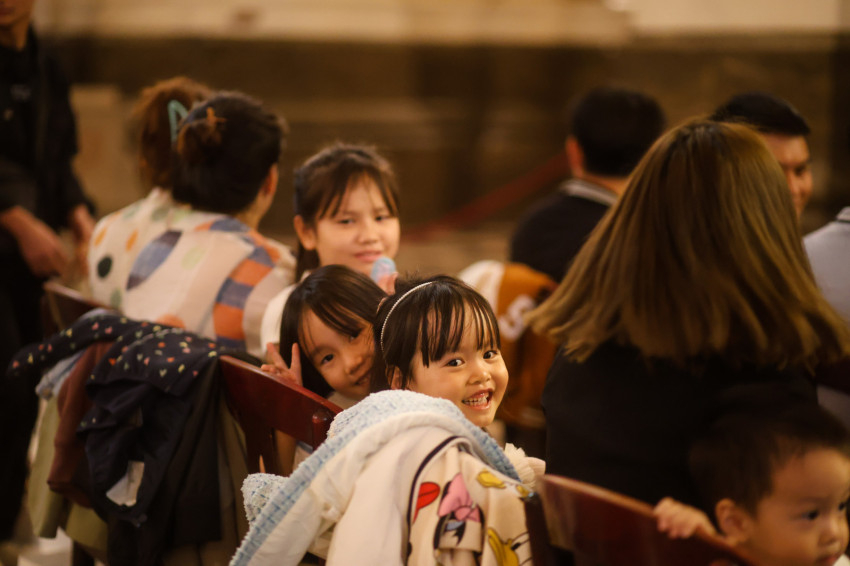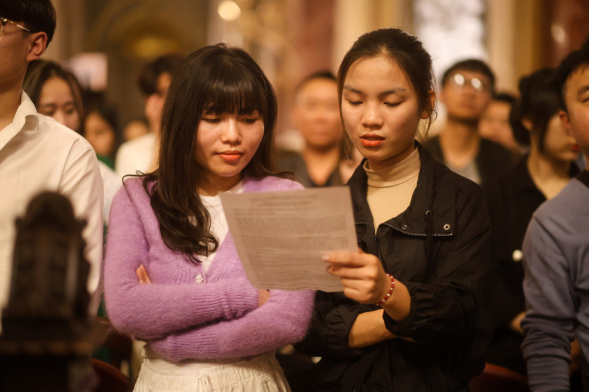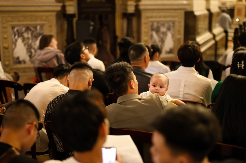 Népviseletbe öltözött hívek vitték a kenyeret, a bort, valamint gyümölcsöket és virágot az oltárhoz, miközben vietnámi gitáros kórus énekelt. A szentáldozás alatt egy spanyol kórus énekelt latinos hévvel.